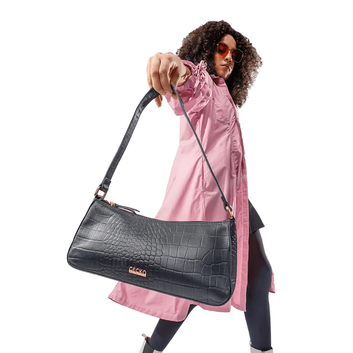 Where sophistication meets intrigue. The Scarlett bag, in a stunning metallic blue-black hue with a refined croc print, is accented with rose gold. It is your perfect companion for making a subtle yet striking style statement.